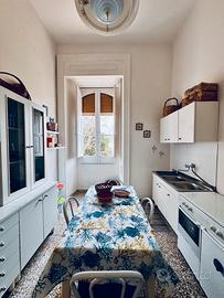 Appartamento appena ristrutturato a piano terra in contesto signorile condominiale composto da 2 camere da letto matrimoniali e due bagni (uno di servizio) cucina completa ed ampio soggiorno, aria condizionata nelle camere. Completa la struttura una discesa a mare privata h24 attrezzata con ombrellone e lettini riservati e comoda scaletta da piscina per raggiungere il mare e doccia di acqua dolce.