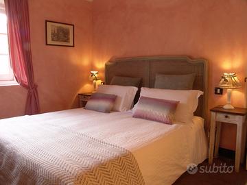 5/6 posti - Appartamento in stile, si compone di una grande sala da pranzo-soggiorno, una camera matrimoniale, una camera con due letti singoli (trasformabile in un letto matrimoniale) e un'altra piccola stanza con un letto singolo trasformabile in letto a castello. Dispone di una cucina con lavastoviglie e un bagno con doccia. L'appartamento si trova in un rustico a 50 metri dalla villa padronale e ha un ingresso indipendente. L'atmosfera e' accogliente ed è arredato con gusto e mobili antichi.