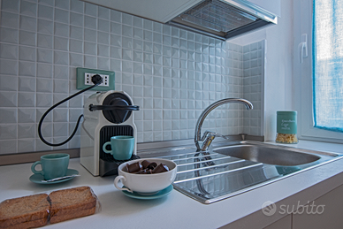 Cucina completa attrezzata macchina del caffè forno microonde bollitore.