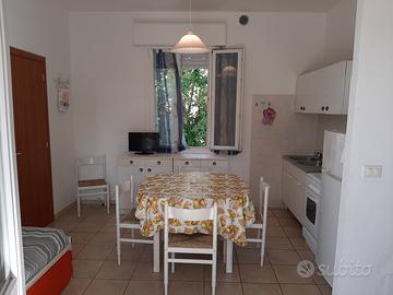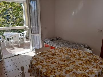 Vicinissimo al mare, in posizione centrale, appartamento per 5 persone con terrazzo abitabile e posto auto.