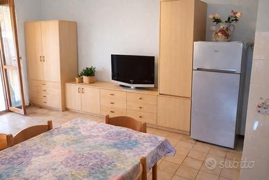 Affittasi bilocale a circa 700 metri dal mare, situato in una zona tranquilla e ben servita. L'appartamento si trova al primo piano con ascensore ed è composto da soggiorno con angolo cottura e divano letto matrimoniale, camera matrimoniale e bagno finestrato con doccia. È completo di elettrodomestici (lavatrice, frigorifero con congelatore, forno, TV, ferro da stiro e stoviglie). L'immobile dispone inoltre di un ampio terrazzo angolare, vivibile e attrezzato, adatto per pranzare all'aperto o rilassarsi. Disponibile posto auto condominiale e facilità di parcheggio nelle vicinanze. Periodi disponibili: maggio, dal 1 al 15 giugno, dal 2 al 16 agosto e settembre. Si precisa che la biancheria non è fornita e che non sono ammessi animali, come da regolamento condominiale.