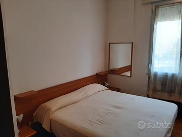 E' composto da soggiorno/pranzo, cucina, camera matrimoniale, camera con letto matrimoniale + letto singolo, bagno, terrazzo attrezzato con tavolo e sedie, posto auto numerato.