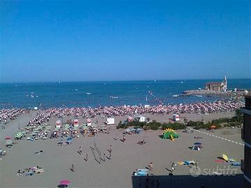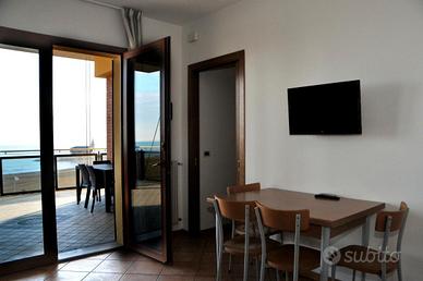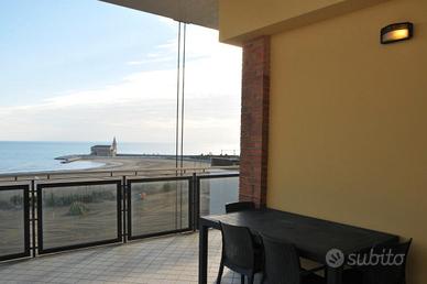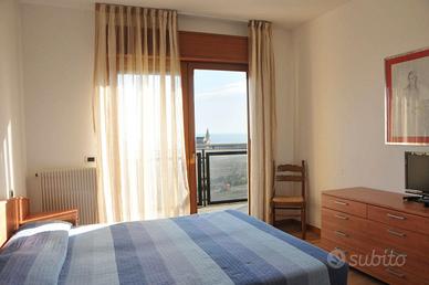 Trivano con ampio terrazzo coperto, fronte mare, vista panoramica, quarto piano con ascensore, posto auto in garage.