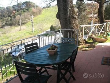 Giardino privato di 80 mq. con ampia terrazza attrezzata, con tavolo e sedie , Barbecue in muratura,Ombrellone e poltrone relax, all'ombra di due Querce secolari,