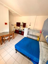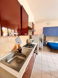 Appartamento monolocale al piano terra, comodo a 600 mt dalle spiaggie, dotato di tutti i comfort tv a schermo piatto, lavatrice, asciuga capelli, cucina ben fornita con forno e microonde, frigo e freezer, alloggio per 4 persone con un letto matrimoniale + un letto a castello