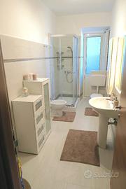 Accanto ad essa vi è il bagno, attrezzato con Box Doccia in cristallo temperato e porta oggetti, bidet e vaso WC, lavabo con armadietto, asciuga-capelli.