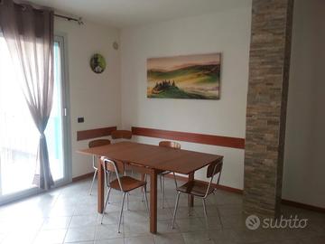 Appartamento trilocale a Igea Marina (Rimini) direttamente sull'isola pedonale di Via Ovidio, 40 mt dalla spiaggia, davanti al bagno Marco 66-67, vicino ai negozi e in zona tranquilla, al 2° piano con ascensore, NUOVO e con arredamento moderno, composto da ampia sala-pranzo con divano letto apribile, angolo cucina con lavastoviglie e microonde, 1 camera con letto matrimoniale, 1 cameretta con letto castello, 5/6 posti letto, bagno con box-doccia, climatizzatore in ogni stanza, ampio balcone con tavolo e sedie per esterno, lavatrice, stendino, TV-Led, parcheggio condominiale comune e garage nel piano interrato. Animali non ammessi.