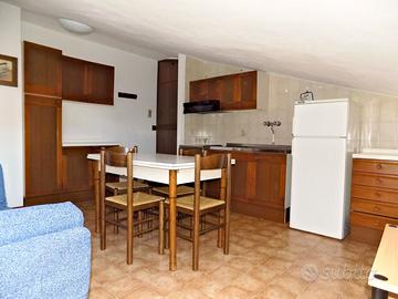 Appartamento mansardato da 1 camera (3 posti letto), cucina, bagno, posto spiaggia riservato con ombrellone e 2 lettini, cabina spogliatoio.