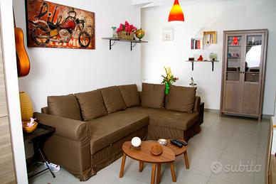 L'appartamento è così suddiviso: Corridoio d'entrata, vasto salone soggiorno (dov'è presente un comodo divano letto matrimoniale), cucina, stanza da letto, antibagno, bagno, veranda arredata.
