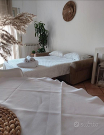 Per un max di 5 persone proponiamo una camera da letto un bagno un grande salone e divano letto con un ampio balcone.