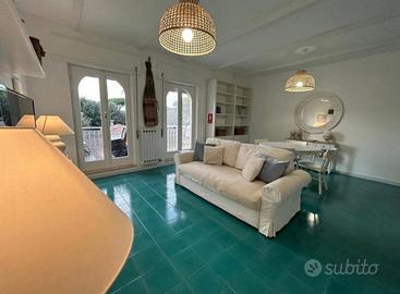 AFFITTASI Fregene NORD, in elegante e storico comprensorio nel verde a 300 metri dal mare, appartamento recentemente ristrutturato posto al 2 piano (con ascensore) composto da 2 camere matrimoniali, 2 bagni (di cui uno annesso alla camera padronale), salotto con divano letto, angolo cottura e 5 piccoli balconi. Aria condizionata in ogni ambiente e Wi-Fi.