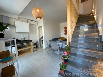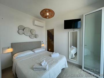 La soluzione Shiarà si trova all'interno di un complesso la cui costruzione è stata ultimata nel mese di Maggio 2022. La casa si sviluppa su due livelli: al piano terra abbiamo la zona giorno composta da soggiorno con angolo cottura ad induzione, divano letto da due posti, bagno con doccia e veranda accessoriata con zona relax, come da foto. Al piano primo invece si ha la zona notte composta da camera da letto matrimoniale e cameretta da due posti letto (stanza cieca, senza aperture verso l'esterno), oltre al secondo bagno con doccia. Terrazza al secondo piano in parte coperta da pergolato, arredata con tavolo e sedie da esterno, oltre ad un salotto relax con vista mare. Tra gli accessori abbiamo wifi, lavatrice, smart tv. Posto auto, soggetto a prenotazione e quindi a disponibilità, con un costo accessorio.