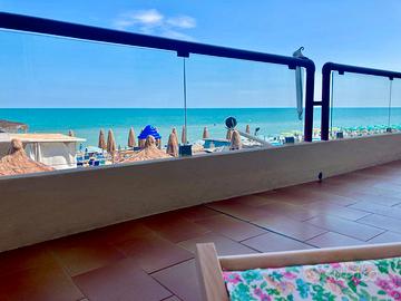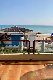 - angolo cottura attrezzato e soggiorno con balcone che si affaccia sul mare.
