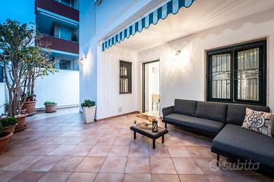 per serate di puro intrattenimento e relax. E parlando del giardino, è il vero gioiello della nostra casa vacanze. Un'oasi di verde e tranquillità, arricchita da tante piante rigogliose e profumate, dove potrete rilassarvi su un bellissimo salottino, decorato con vasi di fiori o candele profumate, offre lo spazio perfetto per appoggiare una tazza di caffè o un libro da leggere mentre ci si rilassa all'aperto.