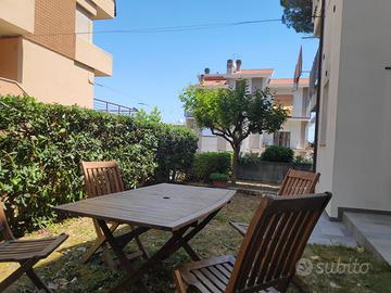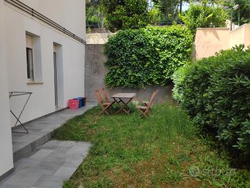 Appartamento rinnovato in villetta trifamiliare recentemente ristrutturata con giardino e vista mare, nel quartiere di Soria. La zona è molto tranquilla e verde essendo alle pendici del colle parco San Bartolo. In 7-8 minuti a piedi si raggiunge la spiaggia di Baia Flaminia sovrastata dal bellissimo colle parco S. Bartolo. La fermata autobus è a 100 m dall'alloggio.