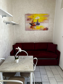 Situato al primo piano rialzato, con ingresso indipendente, appartamentino monolocale provvisto di aria condizionata, composto da angolo cottura con cucina completa attrezzata di frigorifero alto con freezer, forno, fornelli ad induzione, lavastoviglie, ferro da stiro, camera da letto matrimoniale con piccolo balcone che si affaccia su Via del Prete, angolino salotto con TV LCD 32", zona tinello con tavolo da pranzo e divano letto con secondo posto estraibile. Disponibile wi-fi su richiesta.