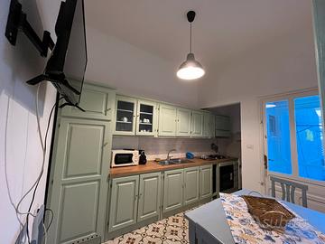 L'appartamento si sviluppa interamente al primo piano al quale si accede mendiante una scala ed è composto da: Cucina, dalla quale si puo accedere ad una graziosa veranda utlizzabile per cene e pranzi all'aperto, una camera da letto matrimoniale con vista panoramica sulla piazza e una camera doppia, che all'occorrenza puo essere trasformata in matrimoniale e in un bagno.