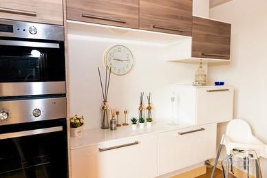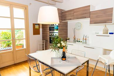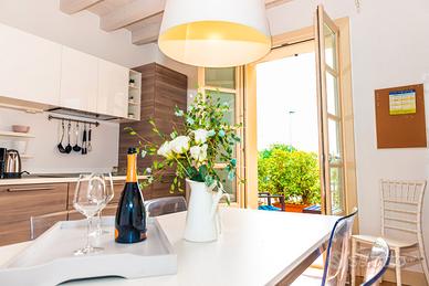L'appartamento è composto da una spaziosa zona soggiorno con divano letto e TV, un antibagno, un bagno e una cucina abitabile con accesso sul terrazzino, (completamente attrezzata di elettrodomestici e utensili) perfetta per preparare i pasti.