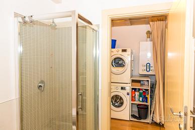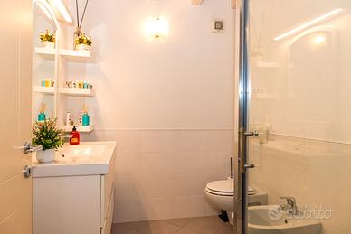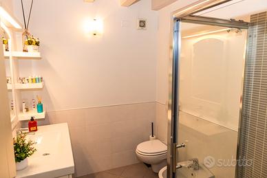 Dalla scala a vista si accede al piano mansardato, dove trovi una camera matrimoniale e un secondo bagno con sanitari e doccia.