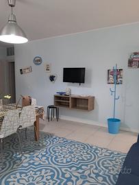 L'appartamento può ospitare fino a 6 persone, preferibilmente 4 adulti e 2 bambini, è formato da una zona living con cucina e divano matrimoniale, da una camera da letto matrimoniale, una cameretta con letto a castello, dispone di un balconcino con tavolino pieghevole e sgabelli e due finestre che rendono l'ambiente luminoso e ben arieggiato.