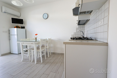 Affittasi bilocali di nuova costruzione da 2 e 4 posti letto, situati in un grazioso residence a circa 70 metri dalle spiagge di Posto Vecchio-Pescoluse, ideali per coppie o famiglie. Sono composti da stanza da pranzo climatizzata con angolo cottura, bagno, camera matrimoniale più letto a castello e giardino riservato. Sono dotati, inoltre, di WI-FI, zanzariere, tv satellitare, barbecue con possibilità di pranzare o cenare fuori, posto auto interno, lavatrice, doccia esterna per consentire agli ospiti un soggiorno più confortevole e rilassante e in dotazione gratuita due biciclette.