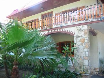 Affittasi appartamento in villa con pineta a 300 mt. dal mare a Marina di Ginosa (TA). Fino a 8-10 posti letto con possibilità di aggiungere alcuni posti letto per nuclei più numerosi. Mare pulito (bandiera blu europea), spiaggia sabbiosa, zona centrale ma molto verde, vicinanza a servizi, bar e ristoranti, parco comunale. La casa è dotata di lavatrice, climatizzatore, televisione, stoviglie e posto auto all'interno del giardino. Costo mensile: Giugno 500 Euro/sett., Luglio prima metà 600 Euro/sett, seconda metà 700 Euro/sett., Agosto 800 Euro/sett. (settimana di ferragosto: 900 Euro); Settembre 600 Euro / sett.. Sconti per soggiorni plurisettimanali o mensili. Sconto per piccoli nuclei fino a 4 persone.