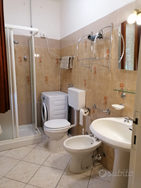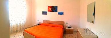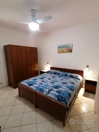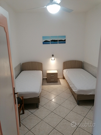 Appartamento per sei persone al primo piano in villetta bifamiliare composta da tre camere due bagni cucina e soggiorno, fornito di ventilatori a soffitto in ogni stanza, lavatrice, terrazza arredata, parcheggio privato e coperto con uso di biciclette zona tranquilla ad 800 metri dal mare