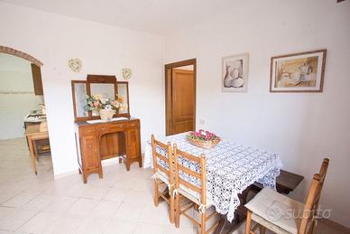 Trilocale 4 posti letto L'appartamento si trova all'interno di una villa padronale recintata e immersa nel verde, è dotato di ingresso indipendente e situato al piano inferiore della villa. E' composto da soggiorno, cucinotto, camera matrimoniale, camera doppia con letti unibili, bagno con box doccia, spazio esterno attrezzato con gazebo e attrezzatura da giardino. L'accesso tra il terrazzo ed il giardino è chiuso da un cancelletto, i lati della casa sono a fondo cieco, l'ideale per i nostri amici a 4 zampe. Informazioni sulla posizione: - zona tranquilla, 800 mt dal mare Tipo arredamento: - buono Servizi interni all'appartamento: - tv; frigorifero; forno; lavatrice Servizi esterni all'appartamento: - giardino; arredamento da giardino; posto auto scoperto all'interno della proprietà; barbecue a disposizione per gli ospiti Distanze: - da Portoferraio 7 km; - da Capoliveri 9 km; da Porto Azzurro 8 km; da Marina di Campo 18 km; Marciana Marina 19 km Distanze dalle spiagge: - da Schiopparello 800 mt; - da Bagnaia 4 km; - da Norsi 4 Km; - da Lacona 7 km; da Lido di Capoliveri 5 km