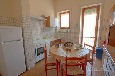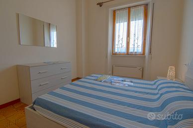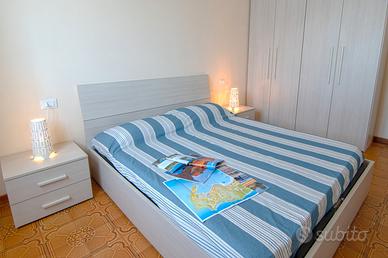 L'appartamento è un trilocale ampio e funzionale, arredato con gusto moderno e pensato per garantire un soggiorno confortevole. La zona giorno comprende un soggiorno con area pranzo e divano, oltre a una cucina abitabile ben accessoriata, con accesso a un piccolo balcone affacciato su Piazza Cavour. La zona notte dispone di due camere: una matrimoniale e una doppia con letto estraibile. Tutti gli ambienti principali, incluse le camere e il soggiorno, offrono una suggestiva vista mare. L'alloggio è attrezzato con numerosi comfort: connessione Wi-Fi, televisione, frigorifero con congelatore, forno, lavastoviglie e lavatrice. Gli animali non sono ammessi. Una soluzione ideale per chi desidera soggiornare in centro, con tutti i servizi a portata di mano e un facile accesso al mare.