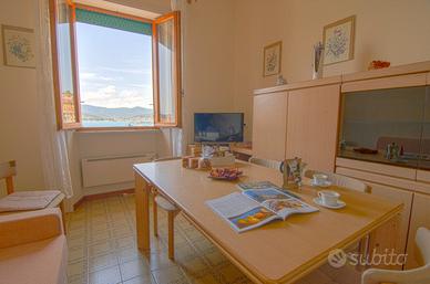 La posizione è strategica per vivere il centro, con i suoi negozi, ristoranti e servizi, tutti facilmente raggiungibili a piedi. L'alloggio gode di una splendida vista sul golfo di Portoferraio, che si può apprezzare dalle finestre del soggiorno e delle camere. A breve distanza si trovano alcune tra le spiagge più rinomate della zona, come Le Viste, La Padulella, Capo Bianco e Le Ghiaie, caratterizzate da ciottoli bianchi e acque limpide, con stabilimenti balneari e punti ristoro. L'area è ben servita dai mezzi pubblici, consentendo di raggiungere comodamente altre località dell'isola. Non è presente un parcheggio privato, ma a circa 600/700 metri si trovano parcheggi pubblici, oltre a un'area a pagamento sotto casa, gratuita dalle 20:00 alle 08:00.