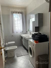o un bagno con wc, bidet, lavabo, doccia e lavatrice