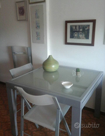 Affitto a Lignano Pineta un accogliente tranquillo appartamento composto da un soggiorno che ha un tavolo allungabile, sei sedie apribili, un mobile fornitissimo, TV, aria condizionata; bagno finestrato con scaldabagno e lavatrice; una camera da letto matrimoniale che affaccia sul terrazzo come il soggiorno, una camera due letti, una cucinetta molto ben attrezzata con frigorifero, congelatore, fornetto scalda pane.