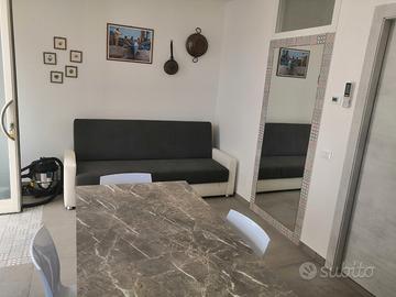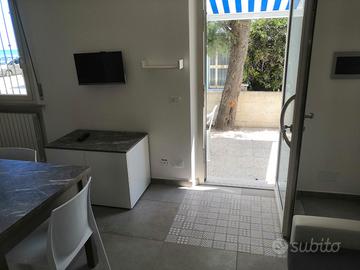 Bellissimo appartamento posto in prima fila sul lungomare di Marotta composto da cucina soggiorno, camera matrimoniale e bagno. L'appartamento dispone di ingresso indipendente dalla corte esterna. E' a disposizione uno spazio esterno per poter mangiare all'aperto coperto da tenda da sole. E' inoltre disponibile l'accesso ad una terrazza panoramica condominiale con possibilità di utilizzo di barbecue (vedi foto). L'appartamento è stato completamente ristrutturato e rinnovato in tutte le sue finiture e gli arredi ed elettrodomestici sono tutti completamente nuovi. Dotato di aria condizionata ed ogni comfort. Massima cura nei dettagli e nei particolari. L'appartamento, prima dell'arrivo degli ospiti, viene regolarmente sottoposto a sanificazione con apparecchi all'ozono. Disponibilità da subito per periodi transitori e per preventivi e prenotazioni per la prossima stagione estiva.