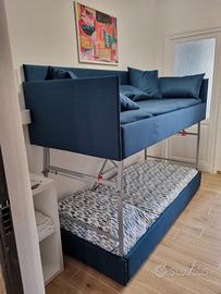 Composto da ingresso con 2 posti letto in divano letto a castello, camera/soggiorno con due posti letto in divano letto matrimoniale, cucina super accessoriata, bagno con doccia. Aria condizionata, ventilatori, TV, lavatrice, forno microonde, wi-fi gratuito.