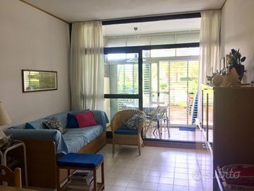 Bilocale, piano terreno, con piscina, 200 mt. dal mare, in condominio con ampio parco.