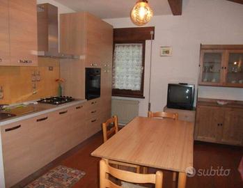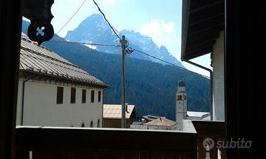 Affitto appartamento a San Pietro di Cadore nel verde Comelico per 4 persone, al piano primo composto da soggiorno cucina completamente attrezzata, camera matrimoniale, camera a due letti, bagno con lavatrice, poggiolo con splendida vista sulle montagne, parcheggio pubblico a m.50.