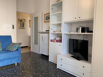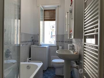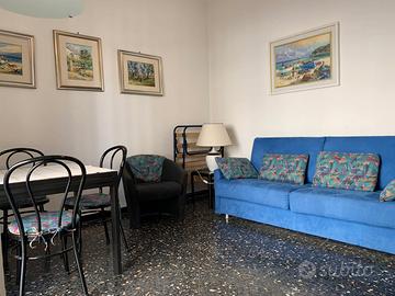 Appartamento ampio e luminoso al primo piano con ascensore, composto da ingresso, cucina, due camere, bagno e balcone con vista mare. Quattro posti letto con possibilità di divano letto aggiuntivo singolo. Dotato di stoviglie, TV, forno, bagno con vasca e doccia, lavatrice, wi-fi. Lenzuola e asciugamenti a carico degli ospiti.