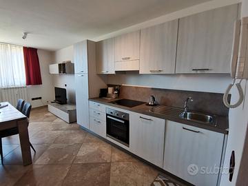 L'appartamento è formato da soggiorno con angolo cottura nuovo, completo di elettrodomestici, letto matrimoniale estraibile, divano letto matrimoniale , tavolo e divano, bagno con doccia e finestra.