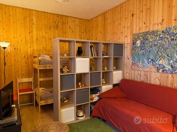 L'appartamento può ospitare fino a 4 persone ed è composto da una camera matrimoniale, un ampio soggiorno con letto a castello separato da divisore in legno, cucinotto e bagno. È dotato di riscaldamento autonomo, TV satellitare, divano letto e posto auto; la locazione include biancheria da letto e da bagno.