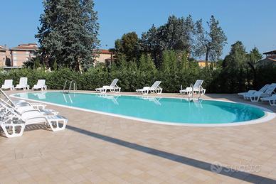 Affitto turistico di ampio bilocale al piano terra con giardino privato, situato in zona tranquilla e ben servita di Peschiera. L'appartamento, completamente climatizzato, è composto da un ampio salotto con divano letto a due posti, da una cucina completa di lavastoviglie, microonde e tutto l'occorrente per preparare cene e pranzi, un bagno finestrato con lavatrice e una camera da letto matrimoniale.