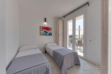Bellissimo appartamento di nuovissima costruzione a soli 200 metri dalla spiaggia e dalle limpidissime acque di Torre Mozza, formato da 2 camere da letto, una matrimoniale e l'altra con 2 letti singoli che all'occorrenza si possono unire, ampio salone con cucina a vista, bagno e veranda esterna antistante per per poter mangiare fuori in completo relax.