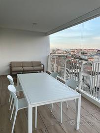 Collocato al sesto piano, l'appartamento dispone di 2 camere da letto, 2 bagni, cucina/salotto con divano letto, un'ampia terrazza con vista mare e parcheggio privato con possibilità di avere il doppio