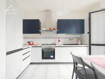 L'appartamento è stato recentemente ristrutturato e i suoi spazi interni, ben distribuiti, danno vita all'ingresso, soggiorno con piccolo terrazzino abitabile e attrezzato con tavolo e sedie da esterno, cucina abitabile con balcone, disimpegno zona notte, camera matrimoniale con balcone, camera con 2 letti, bagno con vasca, bagno con doccia a pavimento con tenda, ampio box auto nel seminterrato.