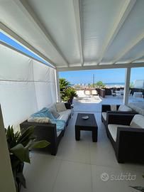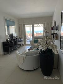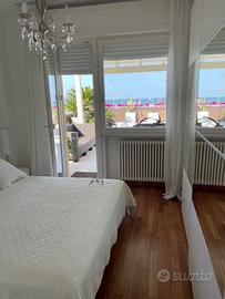 Appartamento Rimini nord fronte mare mq 70 con posto auto di proprietà coperto dentro la proprietà con cancello automatico. Due camere da letto, per 4 persone, aria condizionata. Terrazzo davanti alla spiaggia di 85 mq arredato. Si affitta we lunghi o settimane o mensile in qualsiasi periodo dell'anno. Roberto 3356600919 Cin: IT 099014C2TUJYC29C