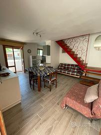 L'appartamento è di recentissima ristrutturazione si sviluppa in 2 piani al primo piano si può trovare una nuova cucina con forno, stoviglie, bicchieri e tutto il necessario per una confortevole vacanza; c'è la lavatrice, ed anche un divano letto con possibilità di un posto aggiuntivo, al piano superiore ci sono le camere da letto con 4 posti letto ed il bagno.