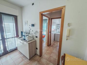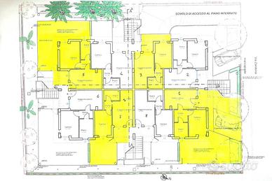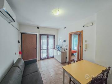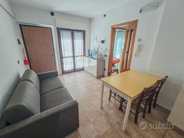 Appartamento al piano terra (int. 6) con soggiorno con angolo cottura e divano letto matrimoniale, disimpegno, bagno con doccia con finestra, camera matrimoniale, corte esterna di mq 70. Posto auto privato al piano interrato. 4 posti letto. Esposizione sud- est.