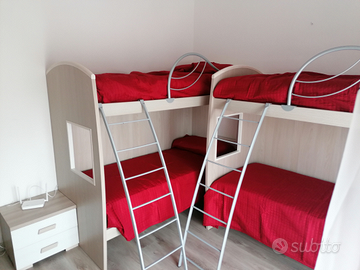 Affittasi appartamento a San Salvo Marina a 50 metri dalla spiaggia sul lungo mare C. Colombo con ampia area condominiale ombreggiata circondata dal verde ideale per bambini, parcheggio libero all'interno. Adiacente trovate il giardino botanico, la pista ciclabile, lo sportello bancomat, un minimarket, spiaggia libera e lido a 2 passi, tutto raggiungibile a piedi. L'appartamento è ampio ed è stato completamente ristrutturato con parquet e mobili nuovi, è dotato di 3 balconi, 8 posti letto 2 matrimoniali (divano letto compreso) e 4 singoli, bagno con vasca e doccino per doccia, tv, WiFi, frigo, forno, lavatrice, aspirapolvere, climatizzatori in ogni stanza e tutto l'occorrente per una vacanza al top!