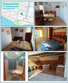 Entrambi gli appartamenti hanno una stanza da letto matrimoniale con condizionatore-pompa di calore, un bagno ed un ampio soggiorno-cucina dotato di divano letto. Le cucine sono equipaggiate di piatti e stoviglie, e tutto il necessario per cucinare oltre che TV. È presente una lavatrice ed entrambi i bagni sono dotati di asciugacapelli e acqua calda. Completano gli appartamenti una comoda veranda nell'alloggio scirocco FRONTE, dove poter pranzare o cenare, ed un giardino ampio con pergola, cucina e doccia esterna, nell'alloggio scirocco SUD.