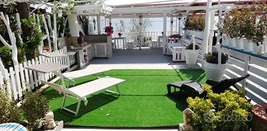 Soluzione comoda e accogliente per coppia e famiglia completamente arredata e accessoriata con disponibilità di 2 terrazze con posto auto riservato, bici di servizio solarium barbecue e tavolo fronte mare.Contatta subito per info!!