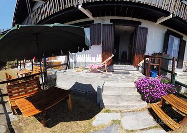 Piano terra: ingresso, soggiorno con angolo cottura (cucina a gas con bombola GPL), camino e TV. È presente un divano letto da una piazza e mezza. Bagno con lavatrice.
